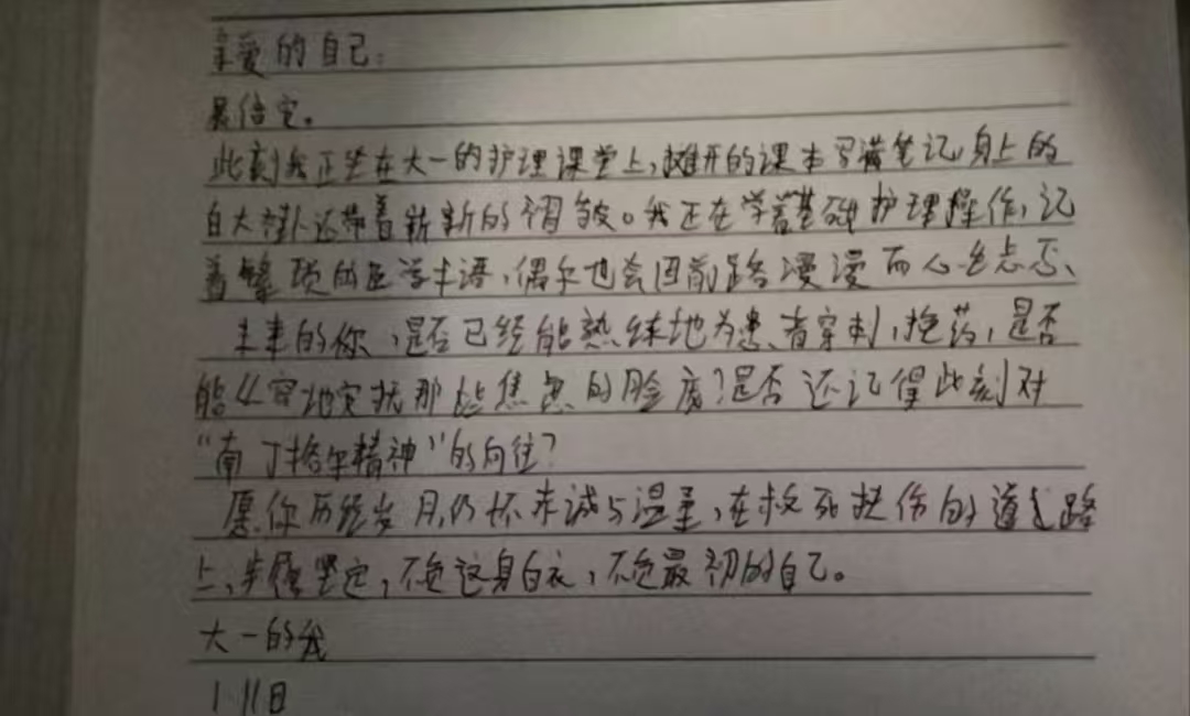 齐齐哈尔工程学院医学院YXY-236组的护理学大一学子们,以一纸书信为媒,向未来的自己倾诉初心与期许。