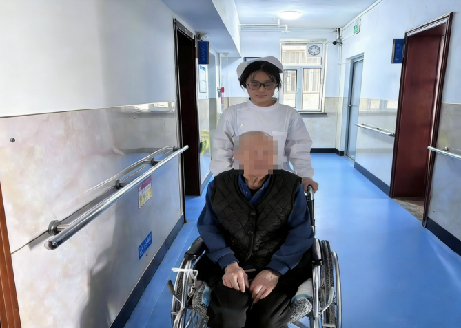 在赵店乡养老院的走廊里,张珍燕同学推着轮椅,陪伴老人散步聊天,细致地为老人整理衣物、擦拭脸庞,用轻柔的动作和耐心的话语,驱散老人的孤独。从日常照护到心理疏导,从康复训练到生活照料,她将护理学专业的温度与深度融入每一个细节,让老人在晚年时光里感受到家的温暖。