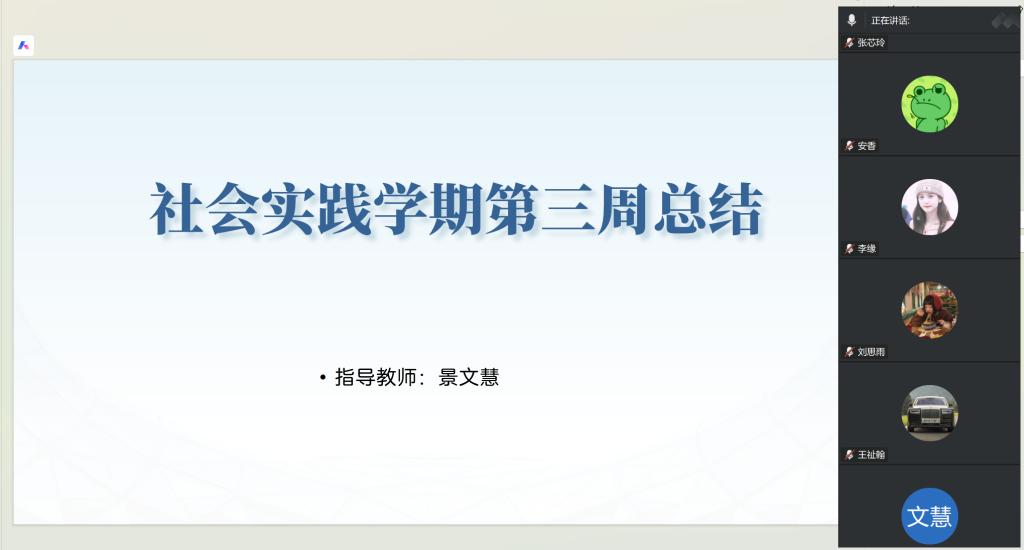 会议伊始,景文慧老师简要介绍了本次会议的目的与流程,强调第三周是实践学习从适应期向深入期过渡的关键阶段,及时进行反思与交流对后续实践成效具有重要意义。