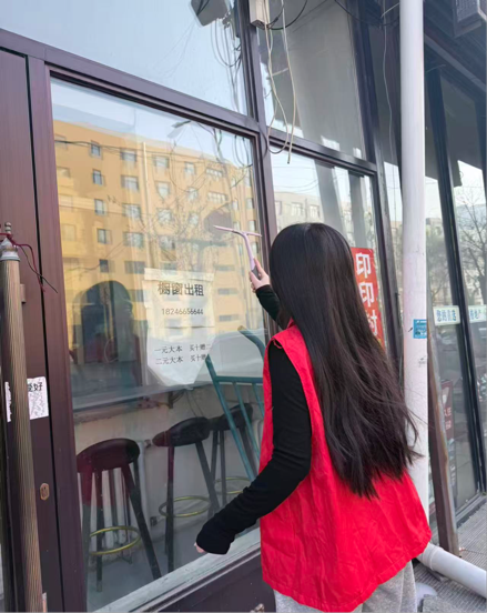 在社区志愿服务活动中,张雅晴积极投身家园清洁行动,主动为居民擦拭玻璃、清理环境卫生。她不怕脏、不怕累,认真细致、一丝不苟,用实际行动美化社区环境,将整洁与舒心送到居民身边,以真诚奉献诠释志愿精神。