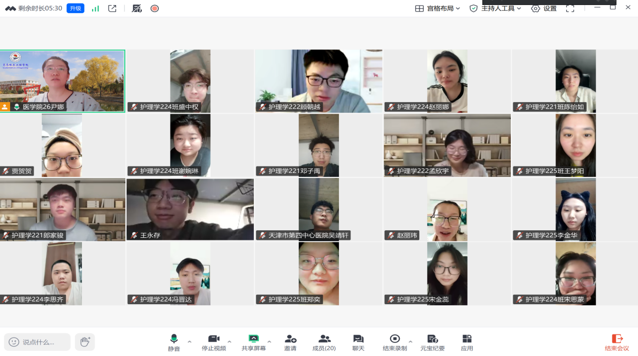 2026年2月25日晚,指导教师尹娜通过腾讯会议的方式召开天津市第四中心医院毕业实习2月份实习阶段总结会议,会议由孟欣宇同学主持,全体实习学生参加。