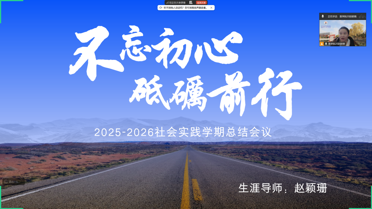 此次总结会,不仅全面梳理了本学期社会实践的成果,更搭建了师生交流成长的平台。在赵颖珊老师的引导下,学生们进一步明确了实践的意义与自身的成长方向,增强了专业认同感和社会责任感。未来,同学们将在实践中成长、在奉献中成才,以青春之我、奋斗之我,奔赴属于自己的人生新程。