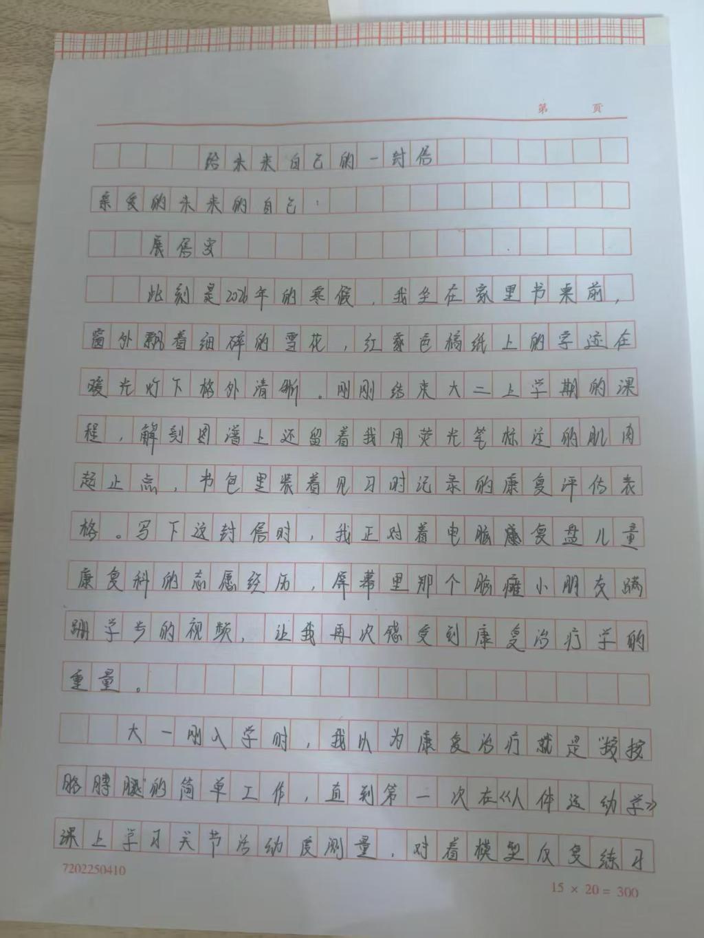 本学期社会实践是我们从课堂走向社会、从理论走向应用的重要一步。它让我更加热爱康复治疗专业,也让我明白作为未来康复工作者肩上的责任。今后我们将以更认真的态度投入学习与实践,不断提升专业技能与综合素养,努力用所学知识帮助更多人恢复健康、回归生活,为健康中国贡献自己的一份力量。