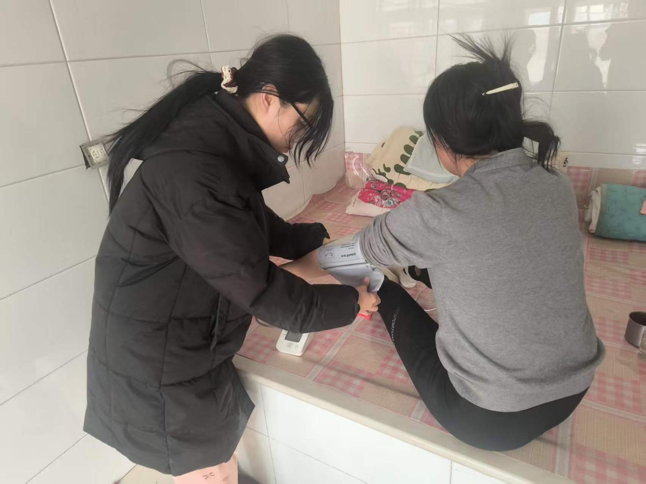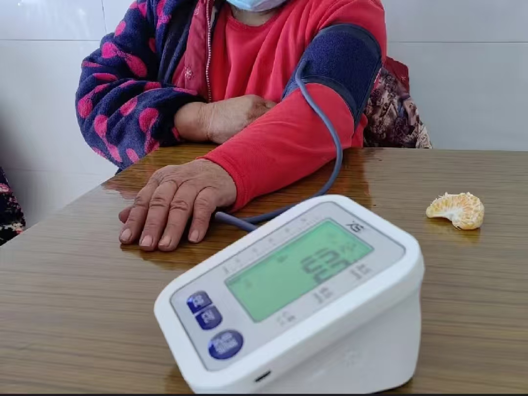 在村委会的健康服务点,我充分运用助产学专业所学,为前来的村民开展血压测量志愿服务,用专业技能守护乡亲们的健康。