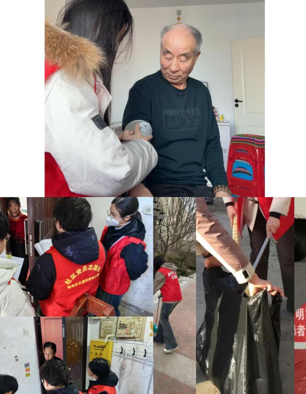 刘奕希与社区人员共同清理楼道杂物、社区公共区域垃圾、小广告,参与垃圾分类宣传与督导。为空巢、独居老人提供上门探访、代买代办、陪伴聊天、健康监测等服务。向老人讲解常见疾病预防、急救技能普及、用药安全指导。