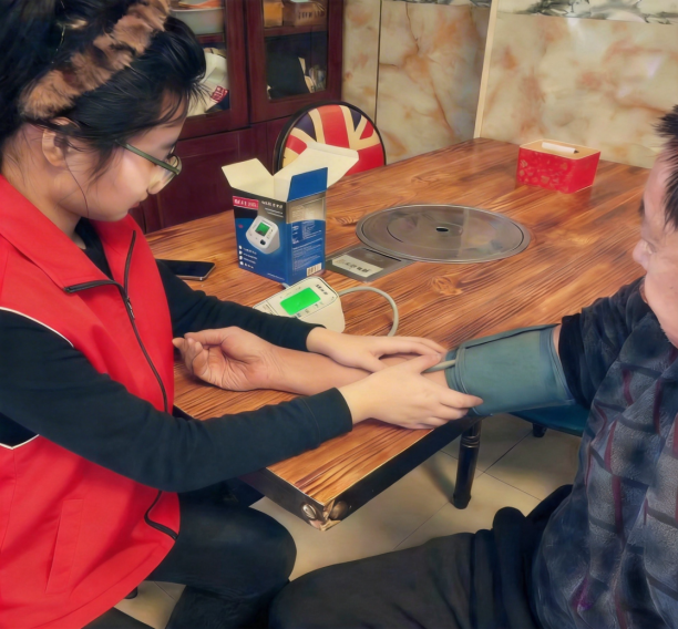 测量结束后,我还与社区工作人员一同为行动不便的独居老人上门测压,叮嘱老人们按时监测身体状况,有不适及时就医,用实际行动为老人们送去关怀与温暖。