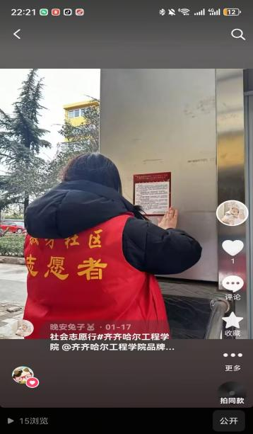 我校赵新宇同学积极投身 “青春 FUN 肆拍” 寒假短视频活动,聚焦活动主题,用镜头悉心捕捉假期生活的多彩瞬间。他认真落实 “烟火里的劳动课”“社会志愿行” 两项必选拍摄要求,以影像留存居家制作美食的温暖烟火气,定格参与志愿服务时的真诚与暖心;并结合自身特色选取 “解锁元气运动” 主题,记录八段锦的每日练习点滴,将健康向上的生活态度传递给更多人。