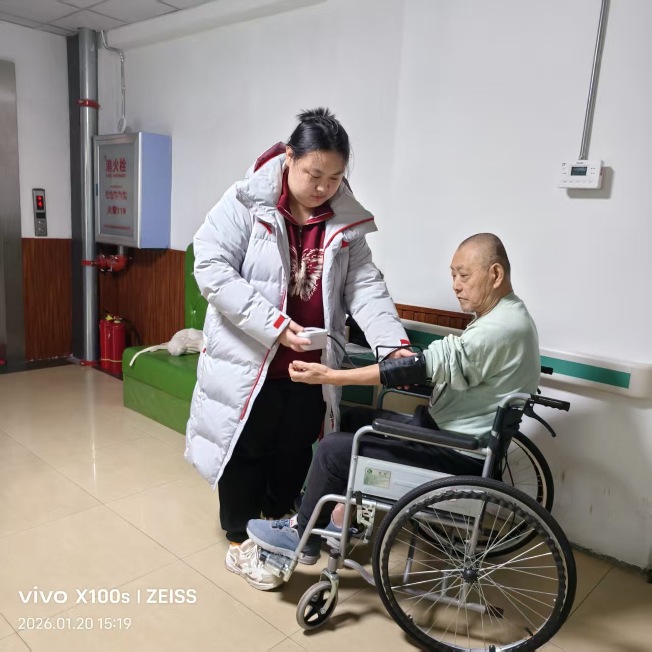 本次志愿服务以普及“健康知识、守护居民建康”为核心。田欣然同学在本次志愿活动中,主要负责为居民提是供血压测量服务以及健康科普相关工作。活舌动期间,她们严格按照规范流程操作,为民绑袖带、测量血压、记录数据,同时耐心解答关于血压相关的健康疑问,告知高血玉人群日常饮食、作息注意事项。针对部分紧张的居民,主动安抚情绪,确保测量结果隹确。针对老年患者提供陪诊沟通用药提醒等贴心服务,同时配合医护人员完成诊疗辅助工作。成员均熟练掌握基础护理操作技能服务流程,沟通表达能力团队协作及问题处理能力显著提升。