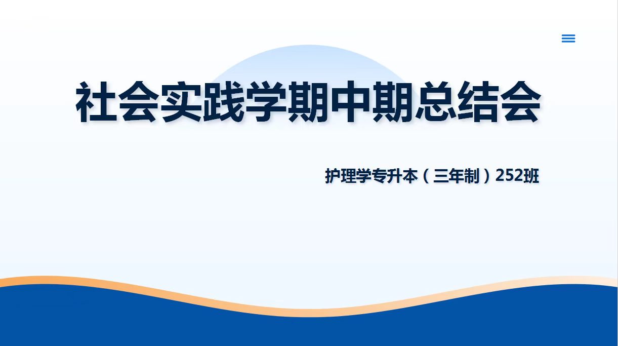 为扎实推进社会实践学期各项工作,将劳动教育与护理专业实践深度融合,及时复盘前期实践成效、梳理现存问题,明确后半程实践方向与要求,保障实践任务高质量推进,护理学专升本(三年制)252班召开社会实践学期中期总结会,会议由辅导员及全体同学参加。