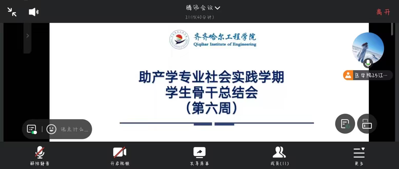 2月27日以“社会实践学期第六周总结”为主题的腾讯会议由辅导员江丽娜老师主持,助产学232班及24级全体班干部参会,共同梳理实践收尾阶段进展,部署后续工作。