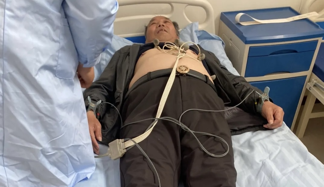 体检现场,老年群体的生理特点为操作带来不少挑战。多位老人皮肤松弛干燥,电极片粘贴后易脱落,导致心电图波形漂移,团队成员随即采用“温水清洁+生理盐水预处理”的方法,先轻柔擦拭粘贴部位去除灰尘与汗液,再用生理盐水提升皮肤湿润度,最后用医用胶布在电极片边缘轻轻加固,有效解决了贴合难题;面对卧床老人,团队成员与护理员协作,将老人调整至舒适的半卧位,垫好软枕支撑身体,连接导联线时遵循“先上肢、后下肢”的顺序,动作放缓至常规速度的一半,避免牵拉关节引发不适;针对听力减退的老人,成员们贴近其耳边,逐字放慢语速讲解检查要求,配合“躺好不动”“放松呼吸”的手势演示,遇到情绪紧张的老人,还会通过“拉家常”聊起养老院的日常饮食、活动,在轻松交流中缓解其焦虑,确保检查顺利完成。