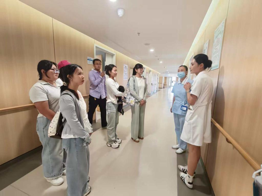 医院护理部主任早已提前做好接待安排,热情地引导我们和老师前往内科科室,开启本次参观学习之旅。在病区走廊,主任首先向师生们介绍了医院的发展历程,详细讲解了内科的科室架构与服务特色,随后重点围绕慢性病护理、急诊处置等核心业务,清晰地阐述了各项业务的运行流程,让同学们对医院内科的工作有了整体了解。