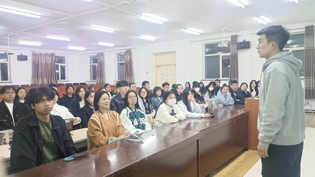 活动伊始,团支书赵祥宇讲述五四运动的历史背景与重大意义,带领同学们回溯那段波澜壮阔的岁月,体悟先辈的爱国热忱与拼搏精神。随后,进入交流分享环节,同学们踊跃发言,结合学业与生活畅谈对五四精神的新感悟,以及如何在日常中践行。有的同学提到要在专业学习上精益求精,有的表示会积极投身志愿服务。最后,团支书赵祥宇总结发言,鼓励大家勇担时代重任。