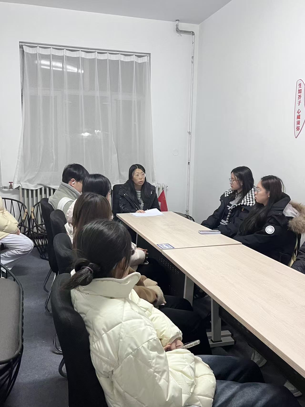 “语言茶话会” 环节,孙伟老师以 “如何克服开口恐惧、实现流畅表达” 为主题展开讲解。她先分析了学生 “不敢开口” 的常见原因 —— 担心发音错误、害怕表达不流畅,随后给出具体解决方法:“首先要接受‘犯错是正常的’,语言学习就是不断修正错误的过程;其次可以从‘简单表达’开始,比如先描述‘我喜欢的英文歌’,用短句逐步积累信心;最后要注重‘日常积累’,平时多听英文对话、记录常用表达,积累越多,开口越轻松。” 讲解过程中,她还结合自身教学经验,分享了往届学生从 “不敢说” 到 “敢表达” 的案例,分析他们采用的方法,为学生提供实际参考,随后才引导学生围绕话题交流,且全程通过讲解点评学生的表达,指出可改进的地方,而非单纯让学生自由互动。