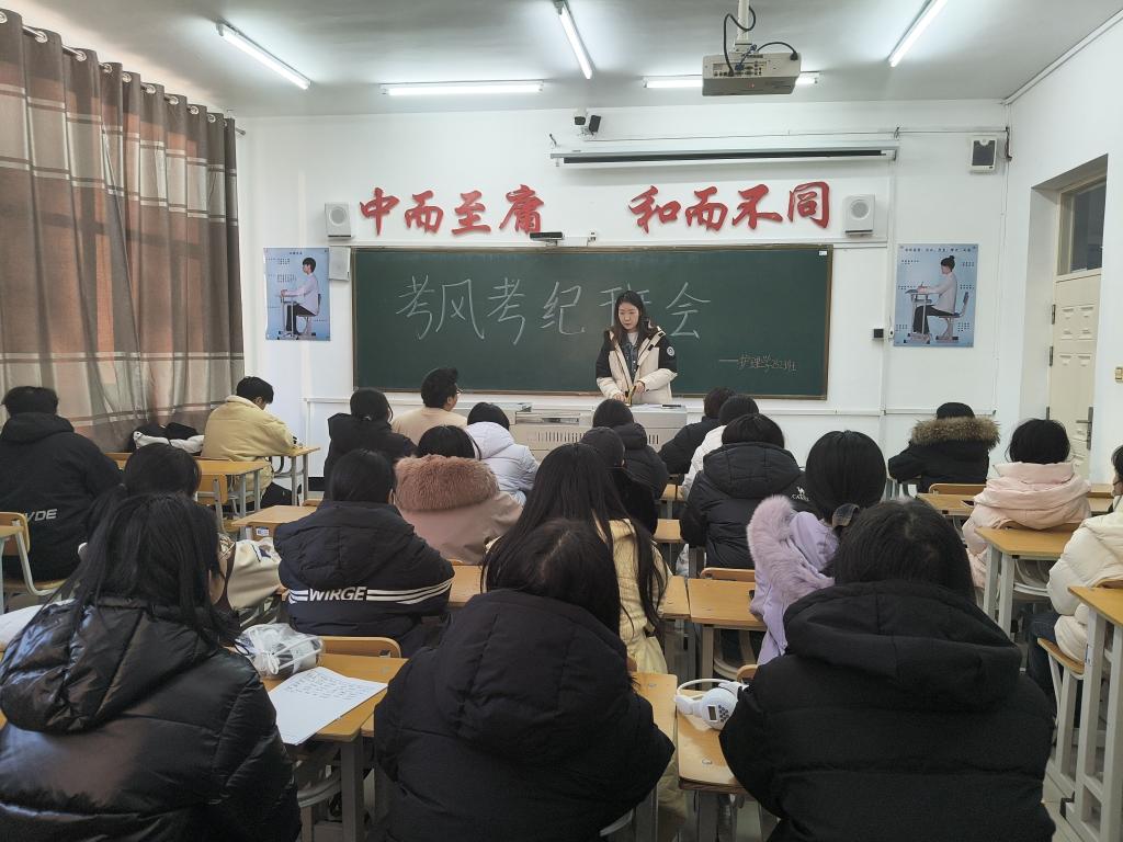 辅导员李妍老师聚焦考风考纪建设,详细解读考场规则,重点强调诚信考试的核心意义,结合典型违纪案例深入剖析作弊带来的学业影响与纪律后果,引导同学们树立“以诚信应考为荣、以违纪作弊为耻”的正确观念,明确要求全体同学自觉抵制不良考风,严守考纪底线,共同营造清朗公平的考试环境。