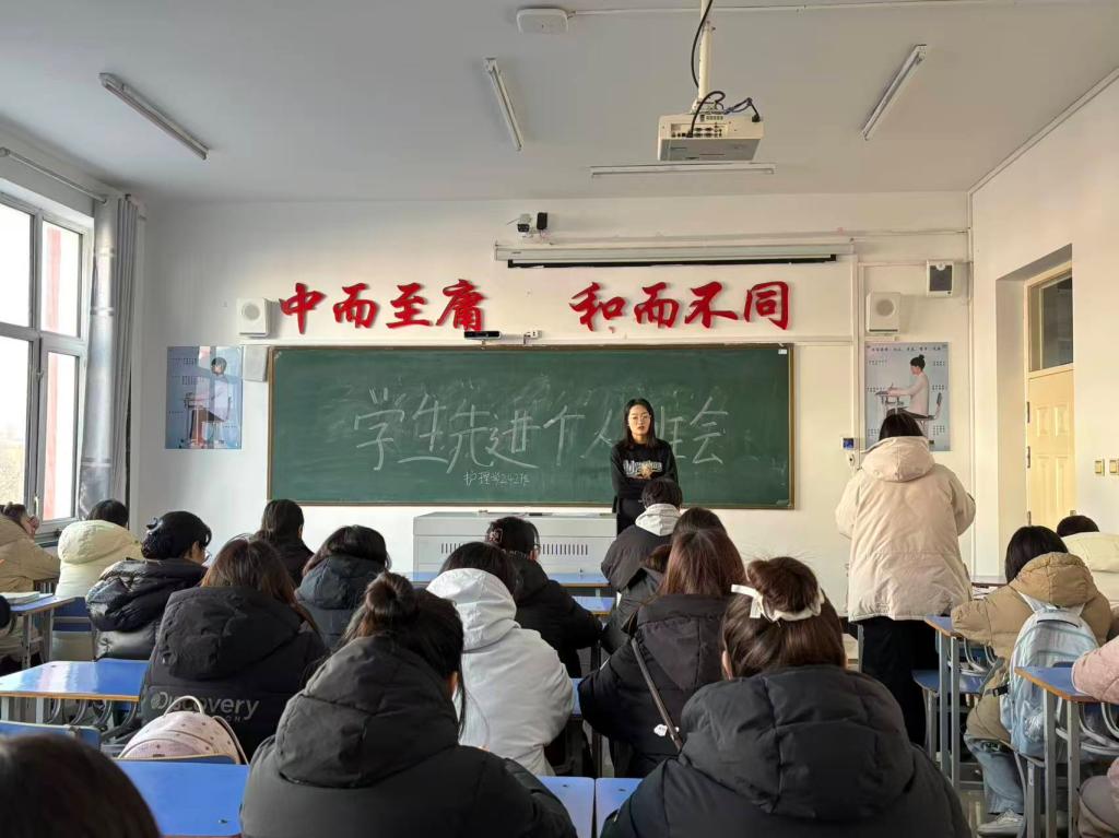 班会伊始,杨嘉琪导员阐明了本次评选的目的与意义,强调评选旨在营造比学赶超的良好氛围,随后详细解读了评选标准、申报流程与投票规则,着重提醒大家要秉持公平、公正、公开的原则参与评选。紧接着进入候选人展示环节,各班内申报的同学依次上台,从学业成绩、实践活动、志愿服务、班级贡献等方面进行述职分享,他们用详实的事例和真挚的语言,展现了护理专业学子勤奋好学、勇于担当的青春风貌,台下同学认真聆听,不时报以热烈掌声。