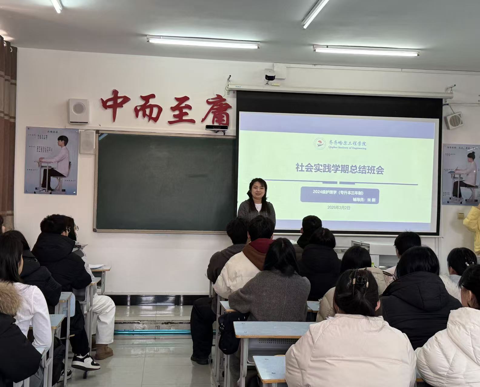 为全面梳理本学期社会实践活动的开展成效,提炼实践过程中的宝贵经验,总结成长收获与不足,引导同学们在实践中践行所学、锤炼品格、提升能力,护理学(专升本三年制)242班于3月2日在一号教学区1201教室组织开展“社会实践学期总结”主题班会,会议由辅导员米新主持,护理学(专升本三年制)242班全体同学参加。