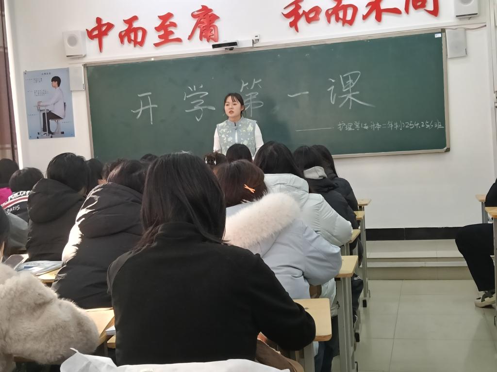 为帮助同学们快速调整状态、收心归位,以饱满的精神面貌迎接新学期的学习与生活,护理学(专升本二年制)254、256班于2026年3月2日在一教1213组织展开“开学第一课”主题班会,本次班会由辅导员邱瀚宁主持,共93名同学参与。