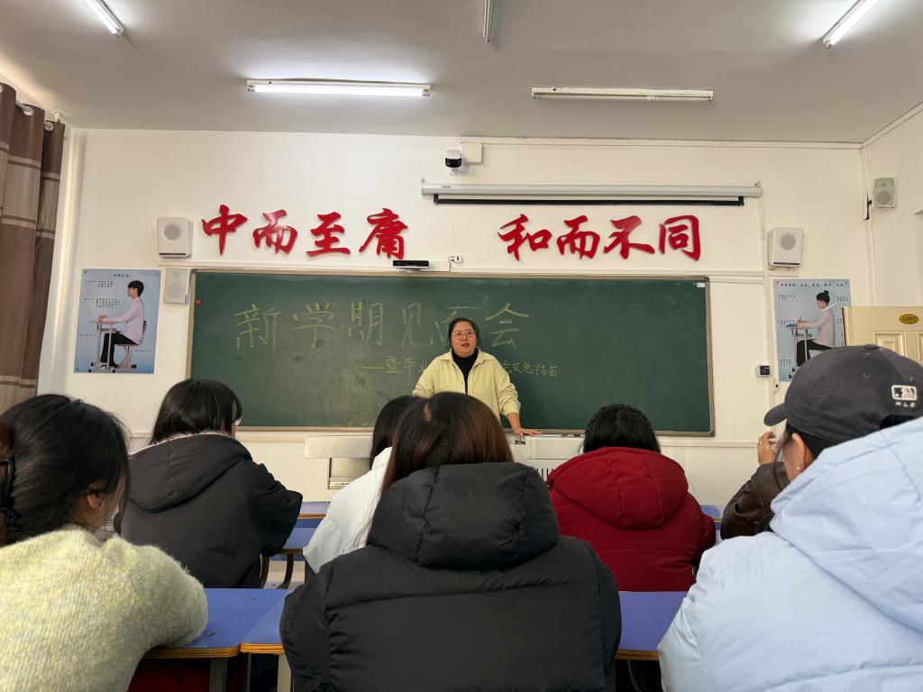 会上,袁凤娟老师首先就新学期整体学习生活注意事项进行全面部署,针对大四阶段关键节点,从学业考勤、校园安全、毕业手续办理、就业备考规划等方面作出详细提醒,叮嘱同学们合理规划时间,平衡好实习、求职、备考与学业任务,以积极饱满的状态迎接毕业季各项挑战。