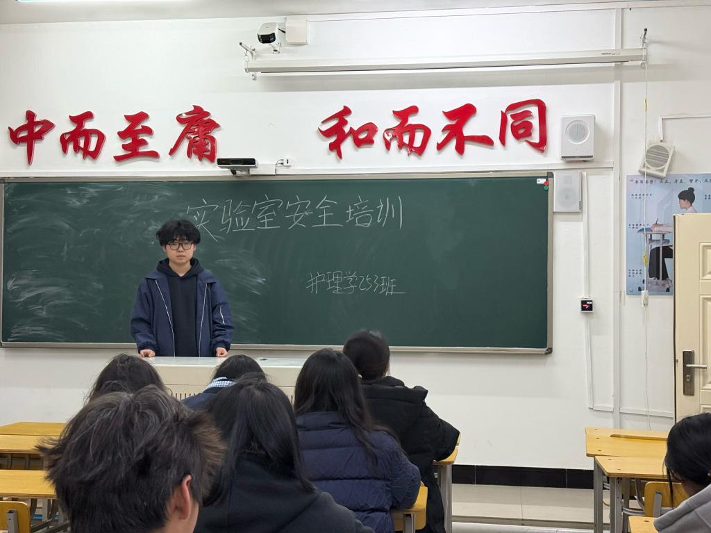 为切实加强学生实训安全管理,培养“居安思危,思则有备,备则无患”的安全意识,护理学253班于3月2日在一号教学区1101教室开展“实验室安全培训”主题班会,本次班会由班长许诺主持,护理学253班全体同学参加 。