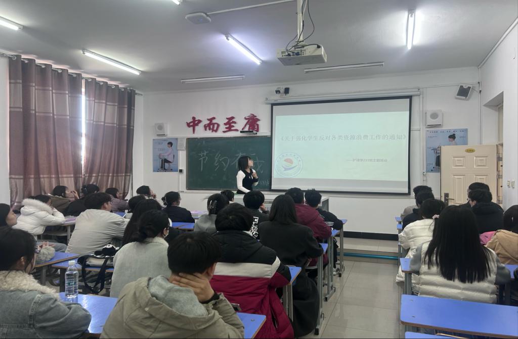 最后,辅导员号召全体同学以此次班会为契机,争做节约行动的践行者与宣传者,从步行楼梯、诚信就餐等小事做起,让勤俭节约成为青春常态,共同营造文明节约的校园风尚。