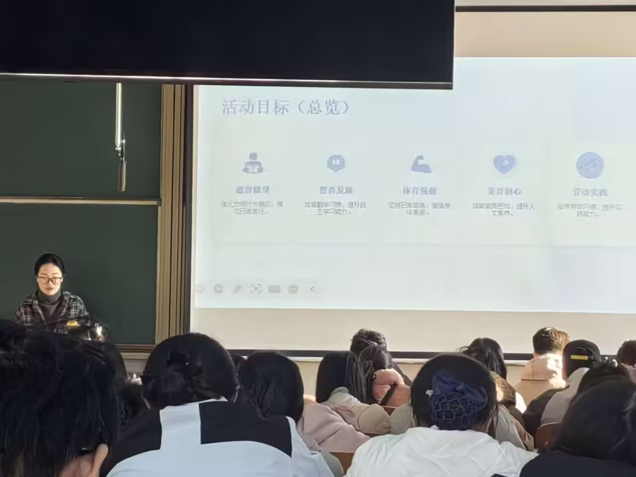 班会伊始,辅导员老师向同学们详细介绍了本次活动的核心目标与整体安排。强调活动以德育修身、智育发展、体育强健、美育润心、劳动实践五育并举为导向,设置文明行为、学业自律、运动打卡、美育浸润、劳动实践五大线上打卡模块,覆盖日常学习、生活与成长全场景。其次,导员重点解读了活动实施步骤与激励机制,通过每日打卡、中期分享、期末表彰形成完整闭环,同时设置全能卓越之星、单项风尚之星等个人奖项,以及优秀组织班级等集体奖项,以正向激励赋能学生成长,鼓励大家积极参与、坚持到底。最后,导员呼吁大家发挥当代大学生的良好风貌,营造良好的学习氛围,让文明自律成为班级风尚。