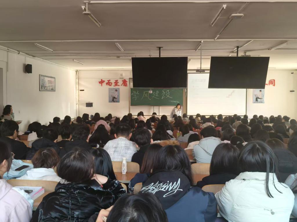 会议伊始,辅导员李妍首先阐释了学风建设的内涵与深远意义。她语重心长地说道:“学风是大学的灵魂,是立校之本、发展之基。”随后,她结合专业学习实际,从明确学习目标、端正学习态度、遵守课堂纪律、优化学习方法、加强朋辈互助五个具体维度,系统讲解了推进学风建设的可行路径。讲解过程中,她还通过图片与数据,向同学们展示了近期班级在课堂出勤、作业完成等方面取得的初步成果。