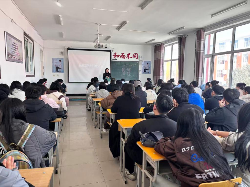 为深入学习贯彻铸牢中华民族共同体意识,引导青年学生树立正确的民族观,增进各民族同学之间的交流与情谊,护理学(专升本二年制)254、256班于2026年3月26日在一教1202组织开展“民族团结”主题班会,本次会议由辅导员邱瀚宁主持,共93名同学参与。